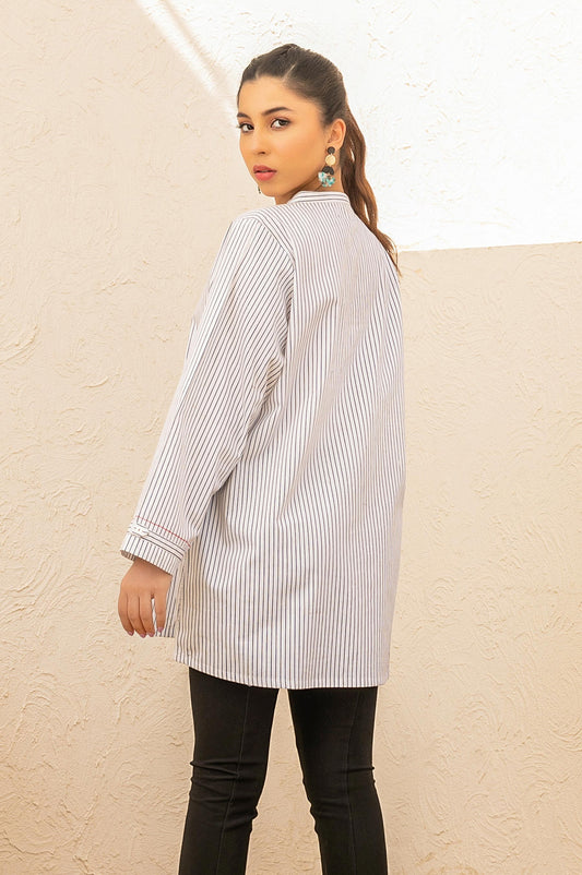 Stitched 1 Piece Embellished Striped Yarn Dyed Shirt
