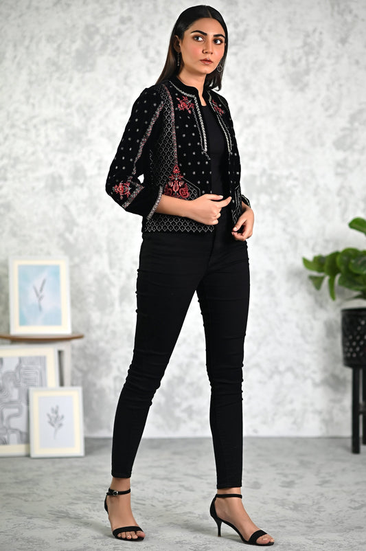 Stitched 1 Piece Embroidered Short Velvet Jacket