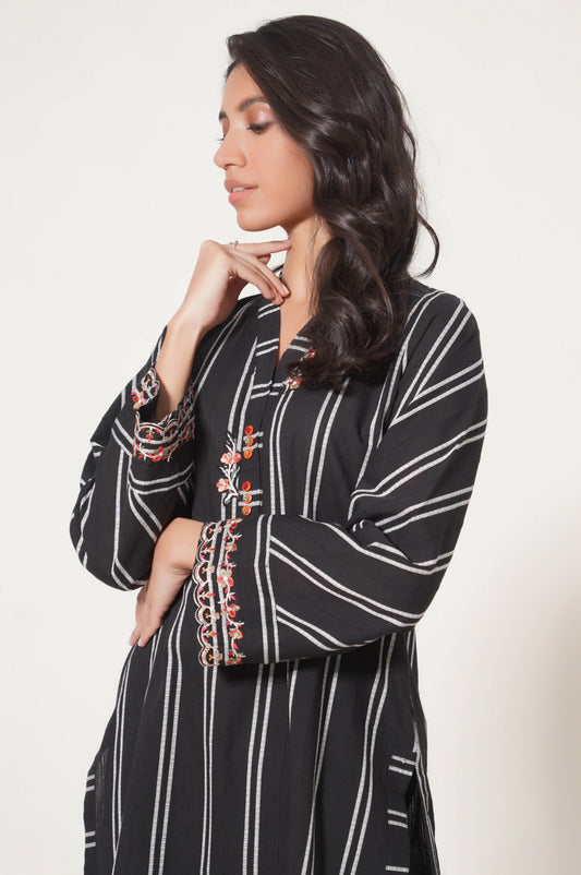 Stitched 1 Piece Embroidered Shirt - Black