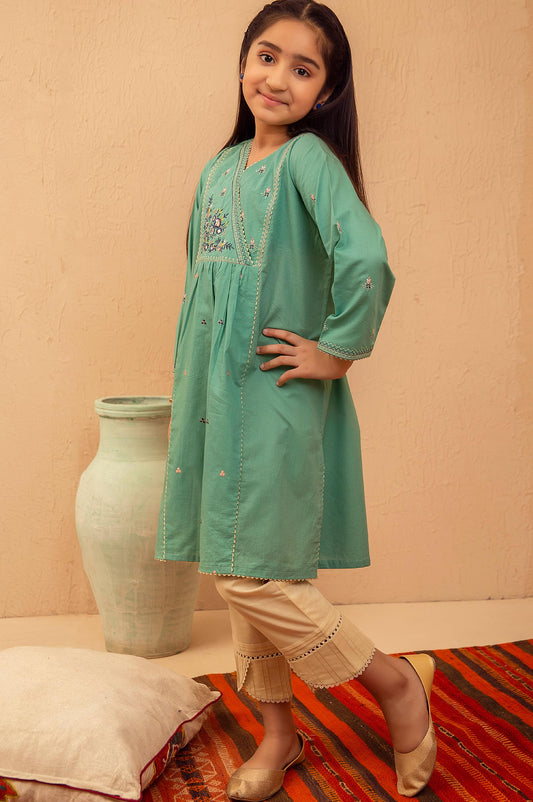 Stitched 1 Piece Embroidered Shirt - Green Moss