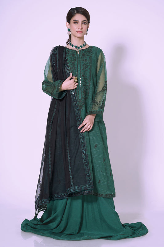 3 Pieces Unstitched Embroidered Textured Organza Suit
