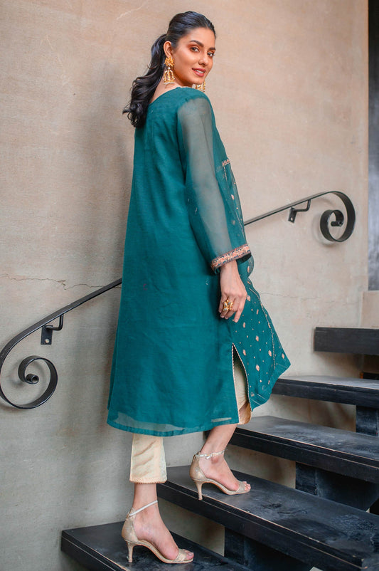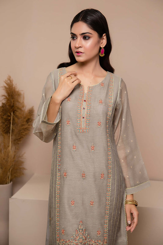 Stitched 1 Piece Khaddi Net Embroidered Shirt