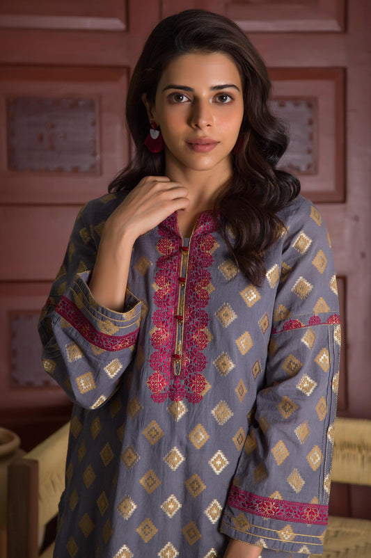 Stitched 1 Piece Slub Khaddi Net Embroidered Shirt