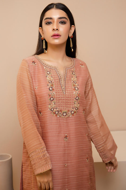 Stitched 1 Piece Slub Organza Embroidered Shirt