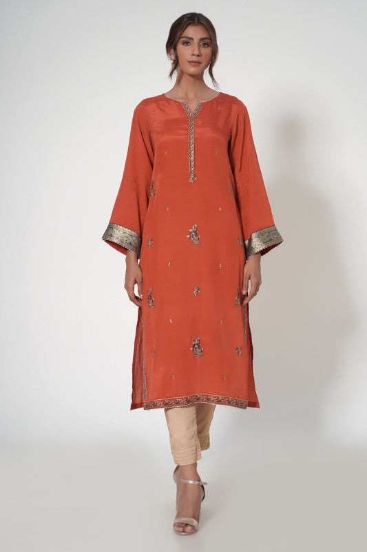 Stitched 1 Piece Raw Silk Embroidered Shirt