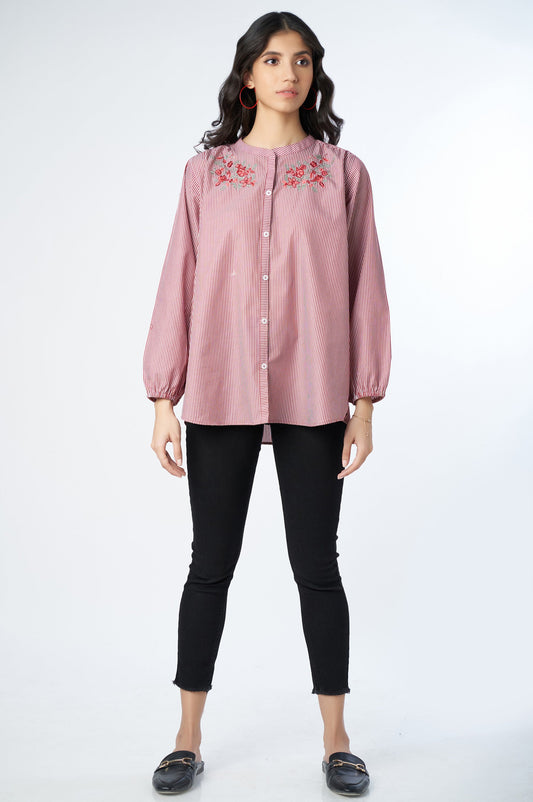 Stitched 1 Piece Zari Striped Embroidered Shirt