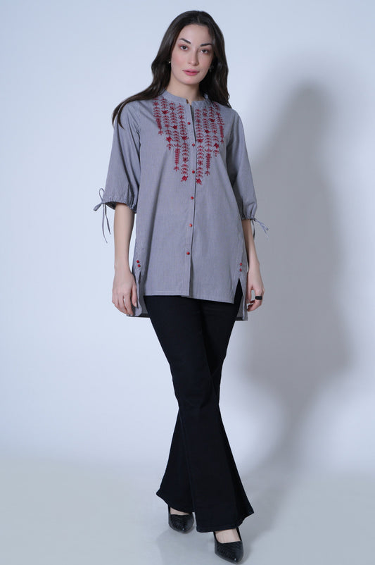 Stitched 1 Piece Zari Check Embroidered Shirt