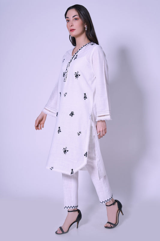 Stitched 2 Pcs Embroidered Cotton Slub Suit.