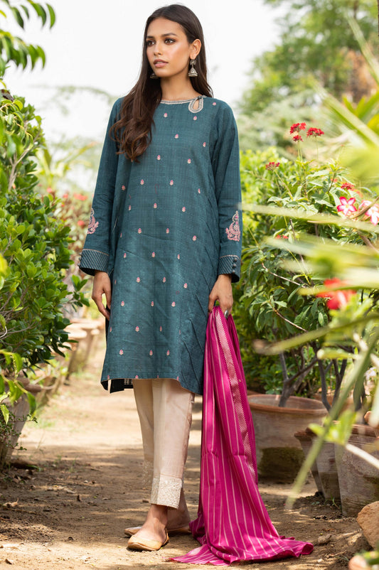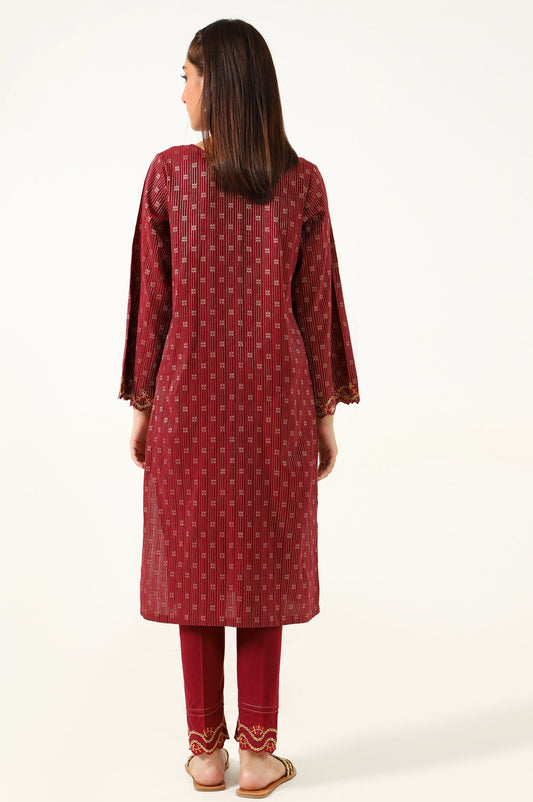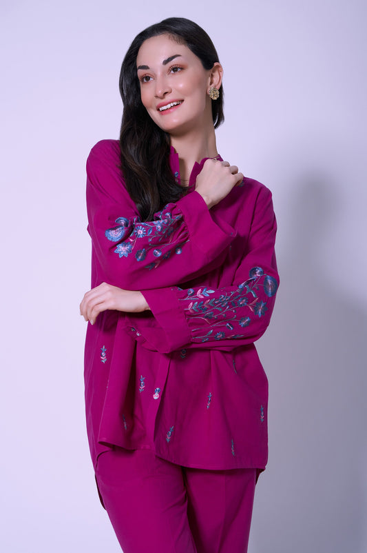 Stitched 2 Piece Cotton Net Embroidered Shirt