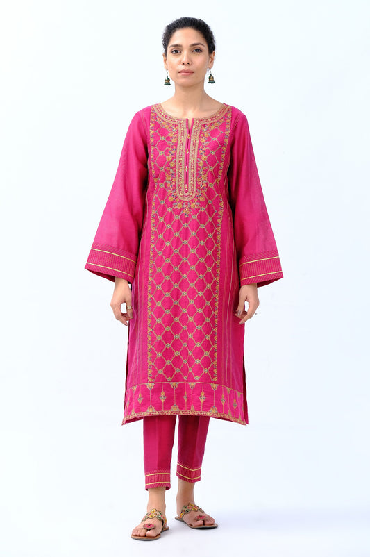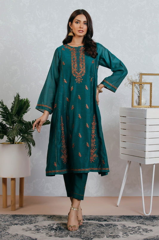Stitched 2 Piece Cotton Silk Embroidered Outfit