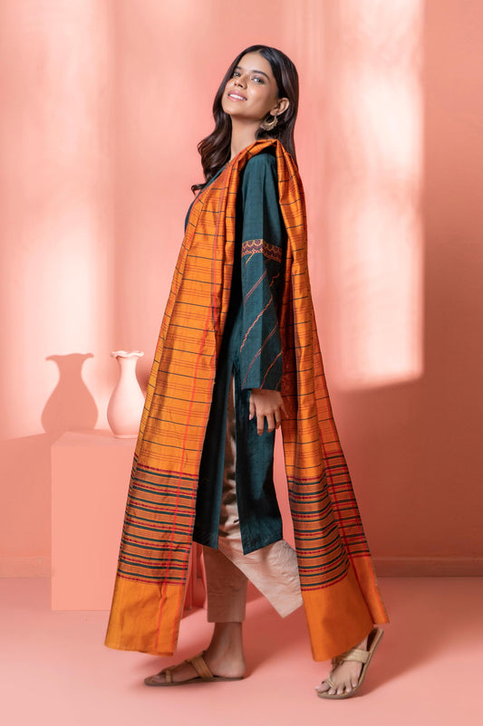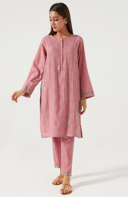 Stitched 2 Piece Embroidered Dobby Shirt With Dupatta