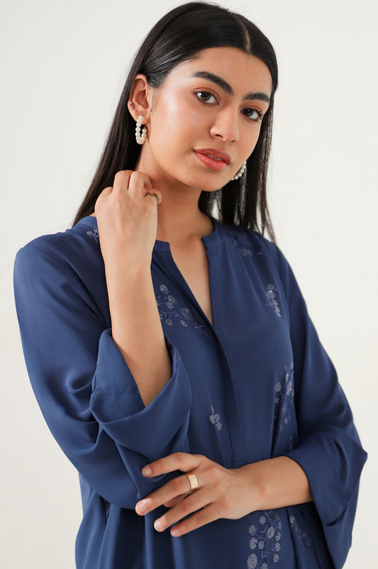 Stitched 2 Piece Embroidered Crepe Shirt & Bottom