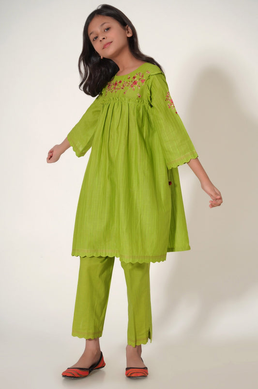 Stitched 2 Piece Embroidered Cotton Slub Suit