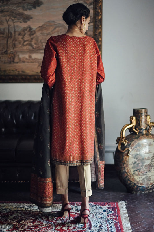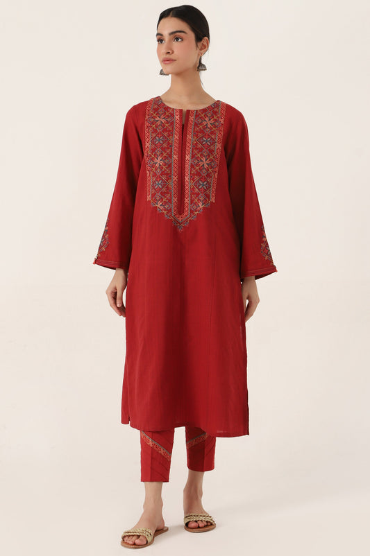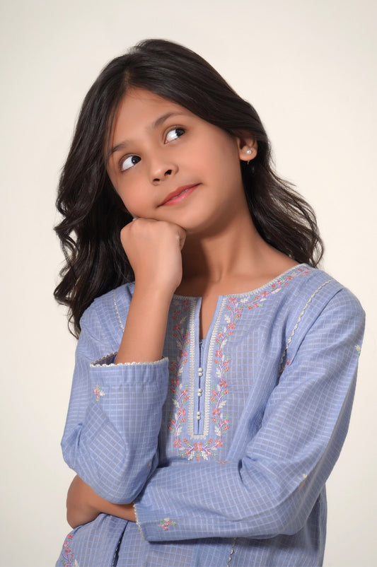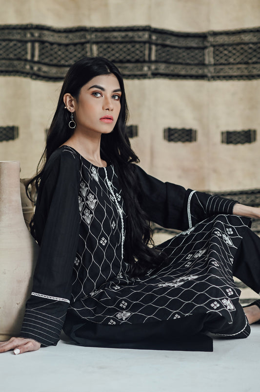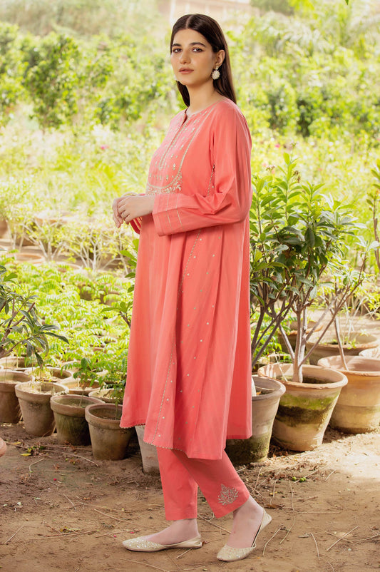 Stitched 2 Piece Embroidered Doria Shirt with Pants