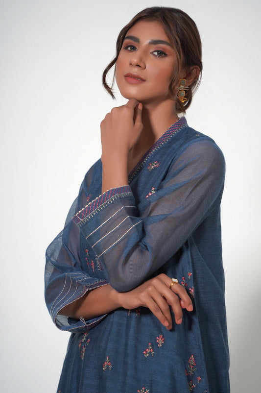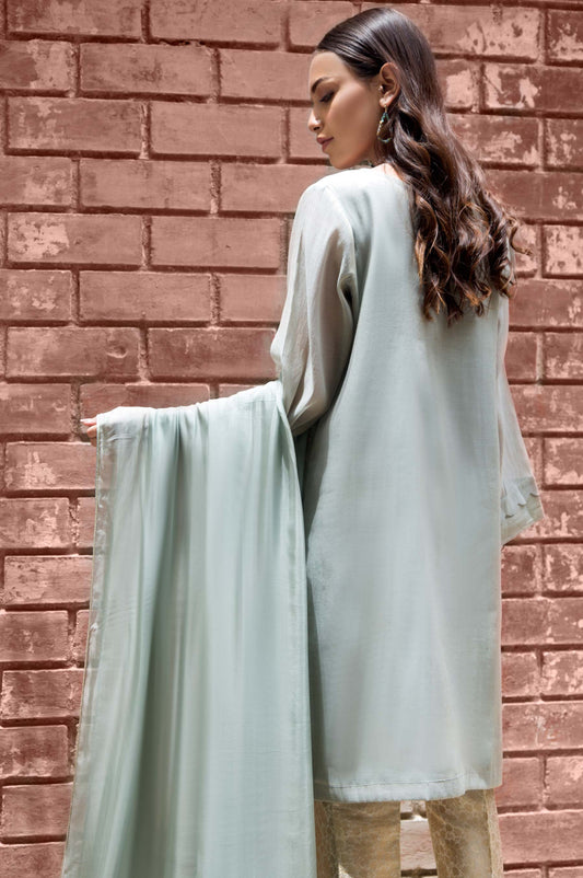 Stitched 2 Piece Khaddi Net Embroidered Shirt & Bottom
