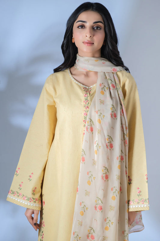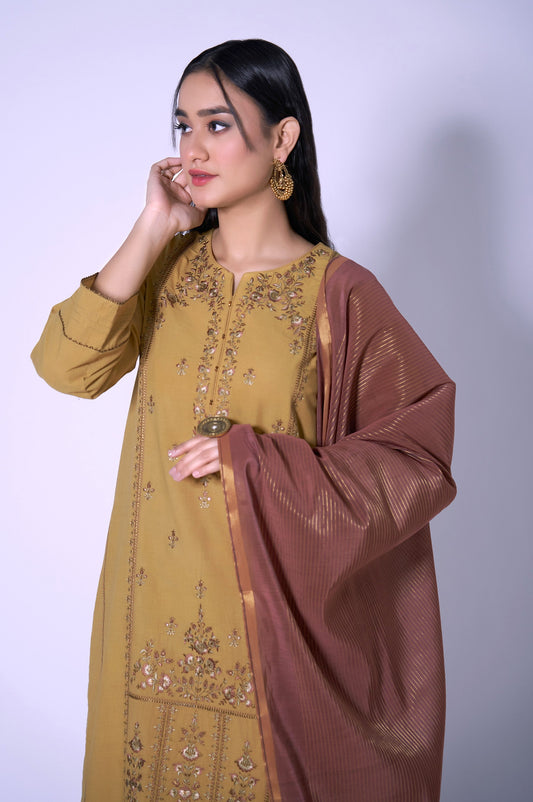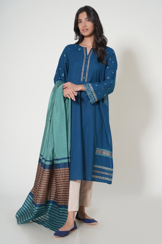 Stitched 3 Piece Both Side Slub Embroidered Khaddar Suit
