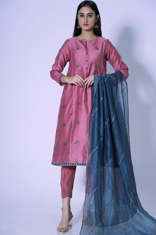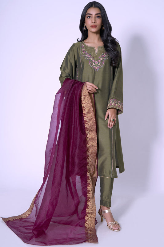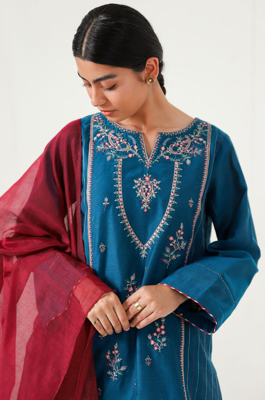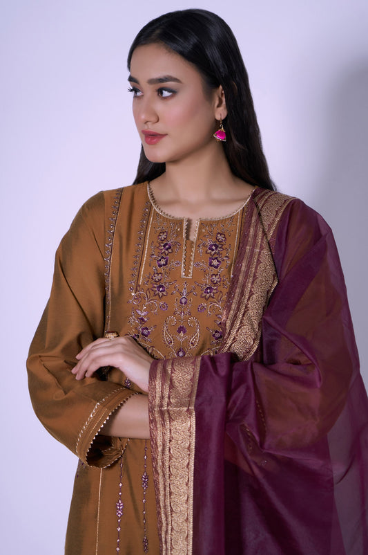 Stitched 3 Piece Cotton Silk Embroidered Outfit