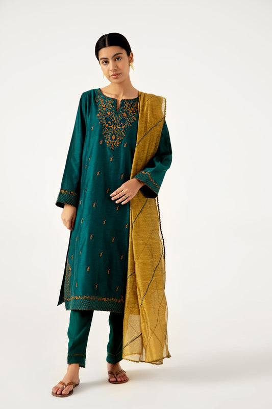 Stitched 3 Piece Cotton Mysruri Embroidered Outift