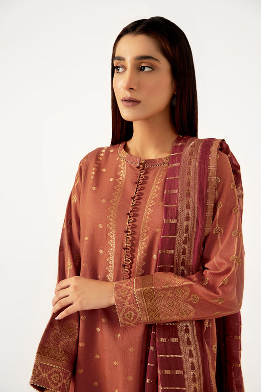 Sold outStitched 3 Piece Dyed Jacquard Suit
