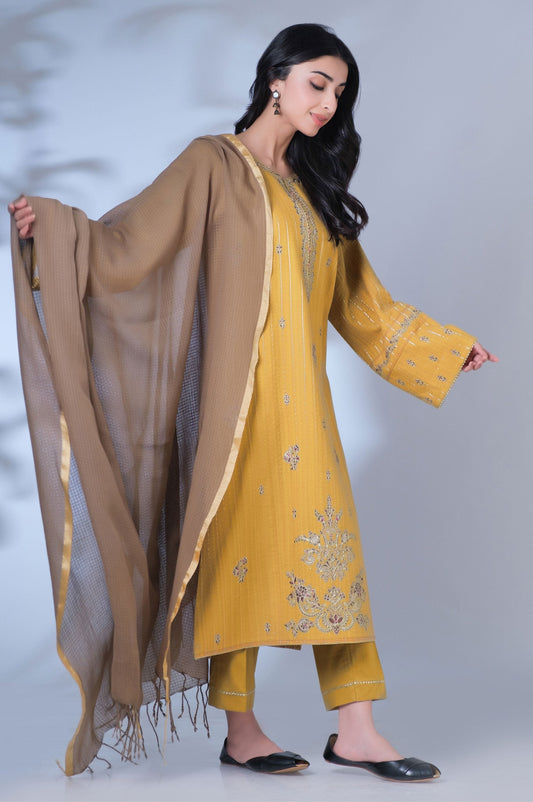 Stitched 3 Piece Embroidered Cottel Suit