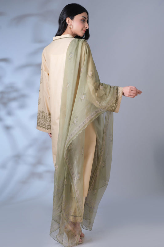 Stitched 3 Piece Embroidered Cambric with Chiffon Dupatta