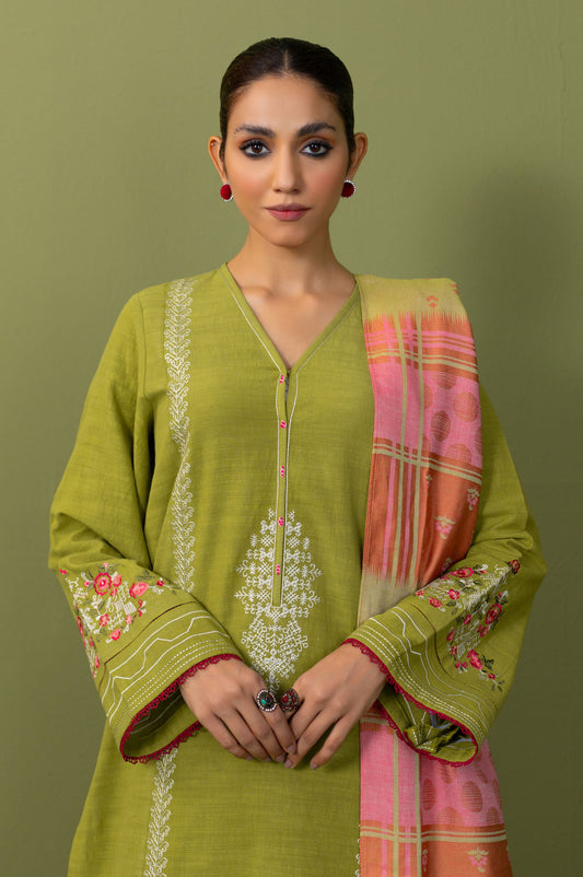 Stitched 3 Piece Embroidered Khaddar Outfit