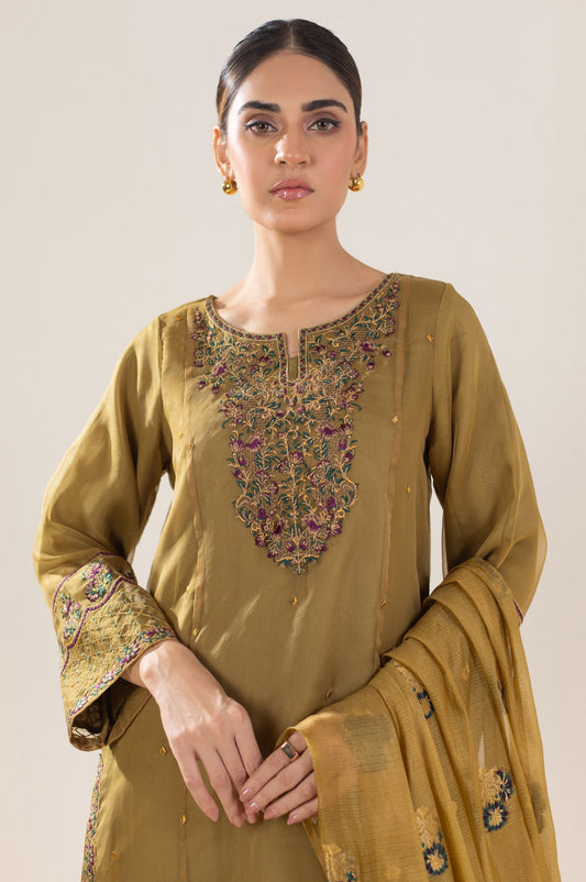 Stitched 3 Piece Embroidered Maysuri Suit with Organza Dupatta
