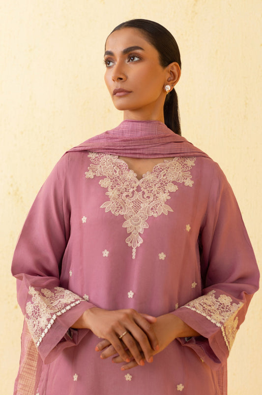 Stitched 3 Piece Embroidered Maysuri Suit with Shaded Organza Dupatta