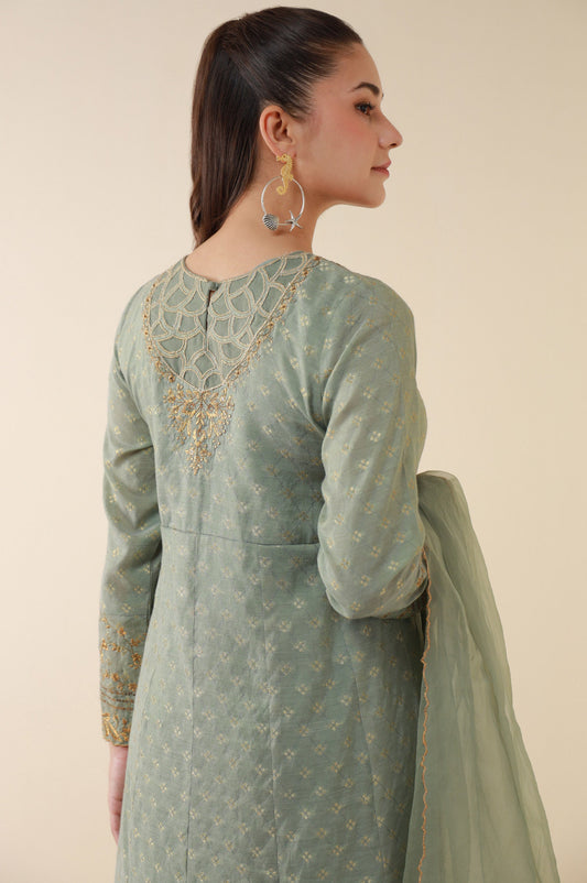 Stitched 3 Piece Embroidered Zari Jacquard Outfit