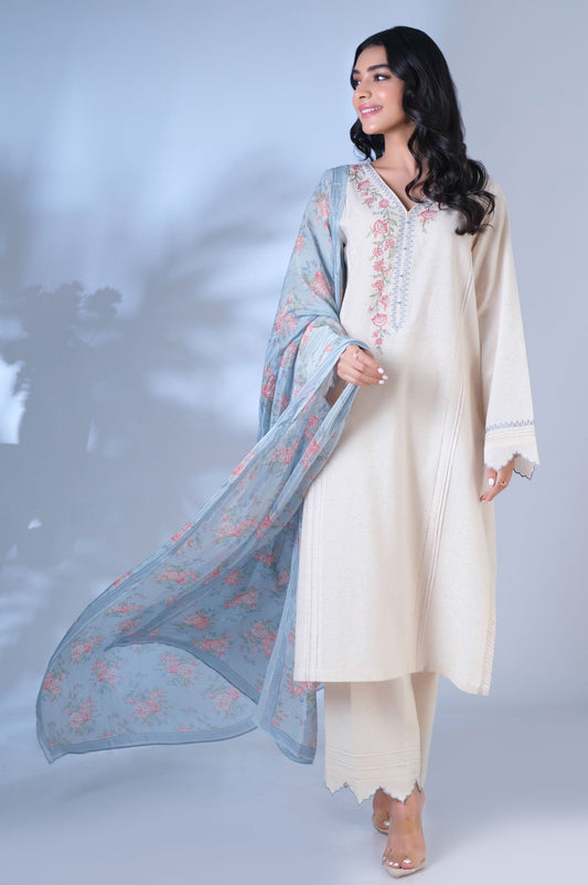 Stitched 3 Piece Embroidered Thai Khaddar Suit