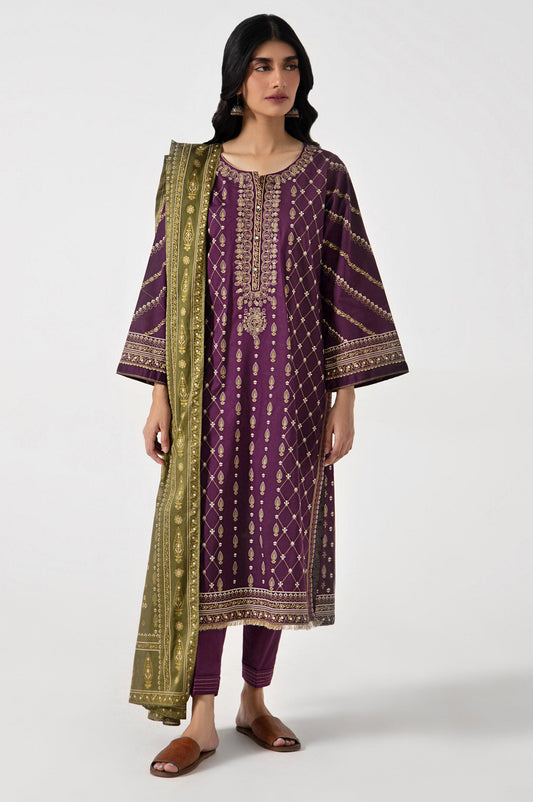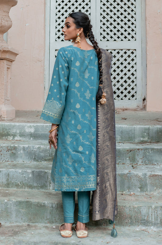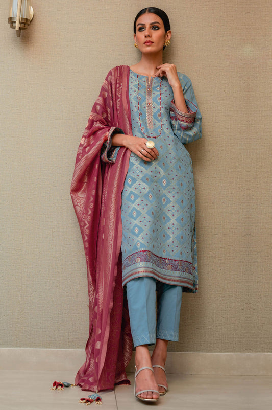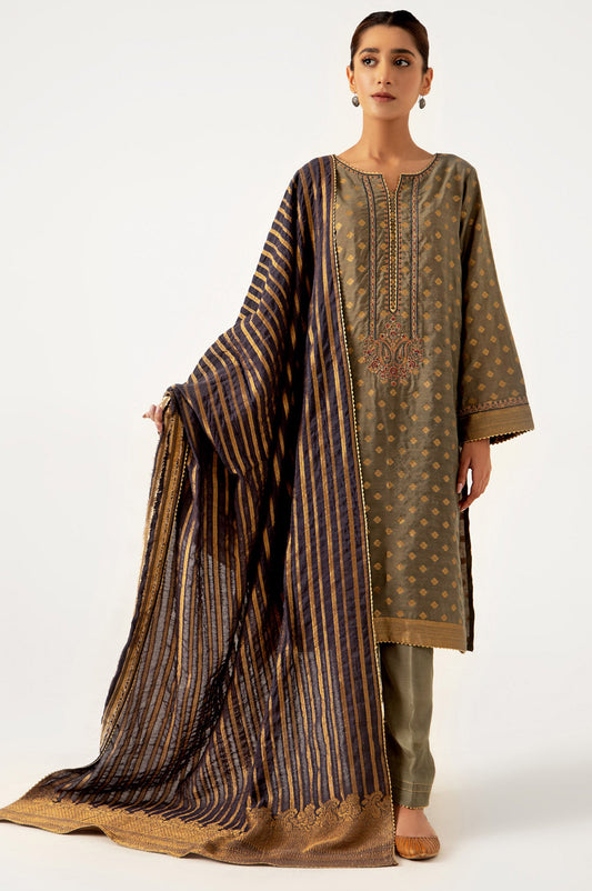 Stitched 3 Piece Jacquard Suit with Jacquard Dupatta