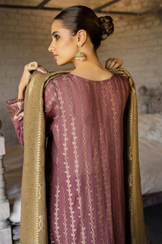 Stitched 3 Piece Jacquard Suit with Jacquard Dupatta