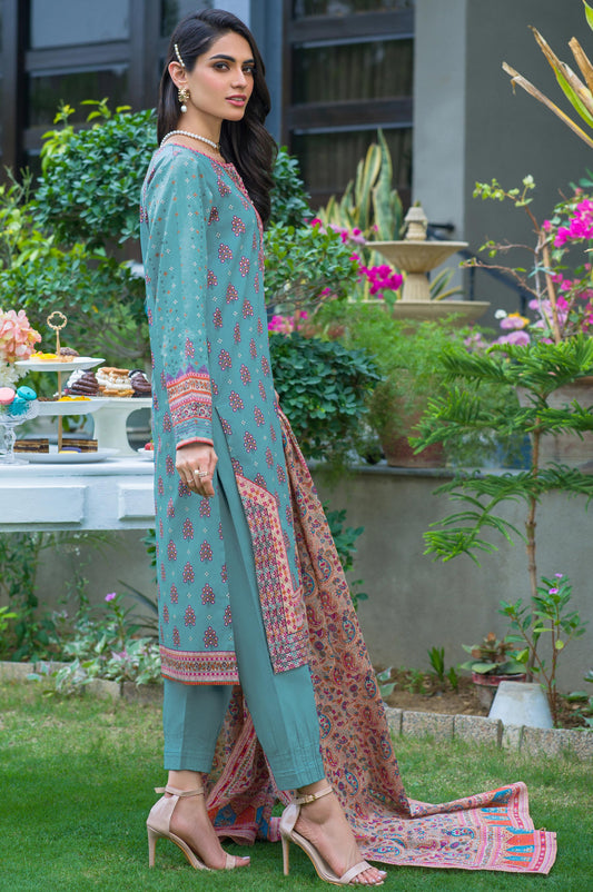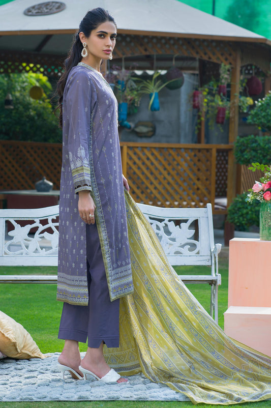 Stitched 3 Piece Printed Lawn Suit with Cotton Net Dupatta