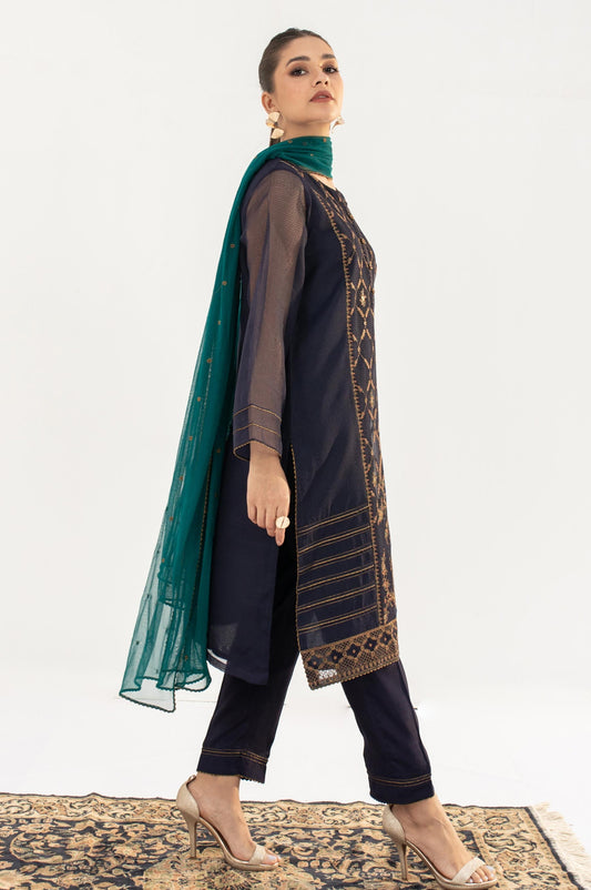 Stitched 3 Piece Textured Organza Embroidered Suit