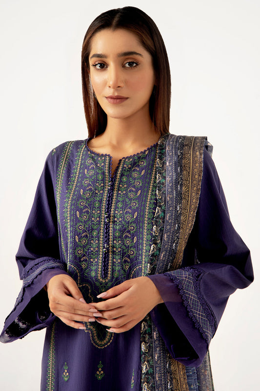 Unstitched 3 Piece Embroidered Digital Printed Lawn Suit