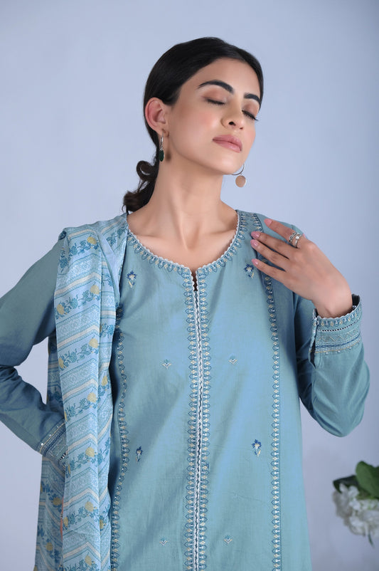 Unstitched 3 Piece Embroidered Slub Lawn suit with Lawn Dupatta