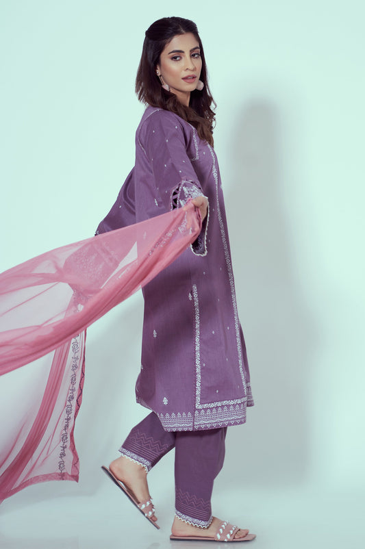 Unstitched 3 Piece Satin Jacquard with Schiffli Chiffon Suit