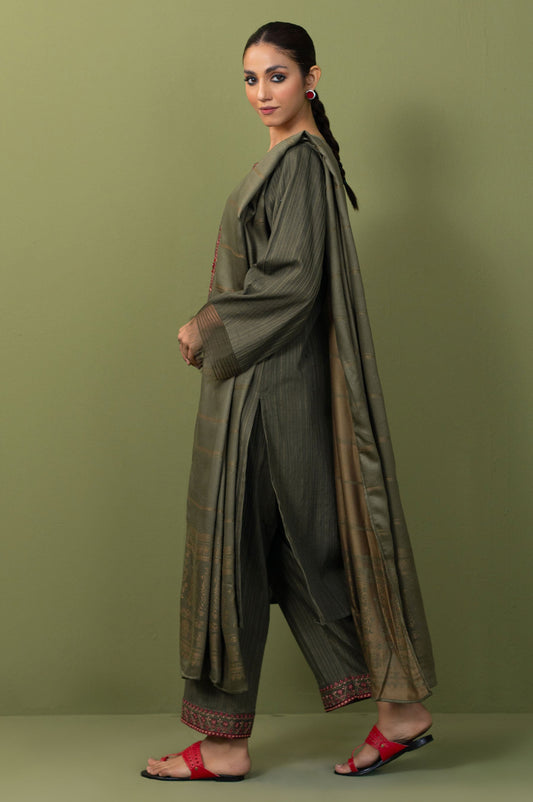 Unstitched 3 Piece Satin Jacqaurd Suit