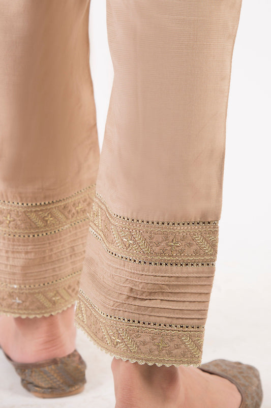 Embroidered Cigarette Pants - Light Beige