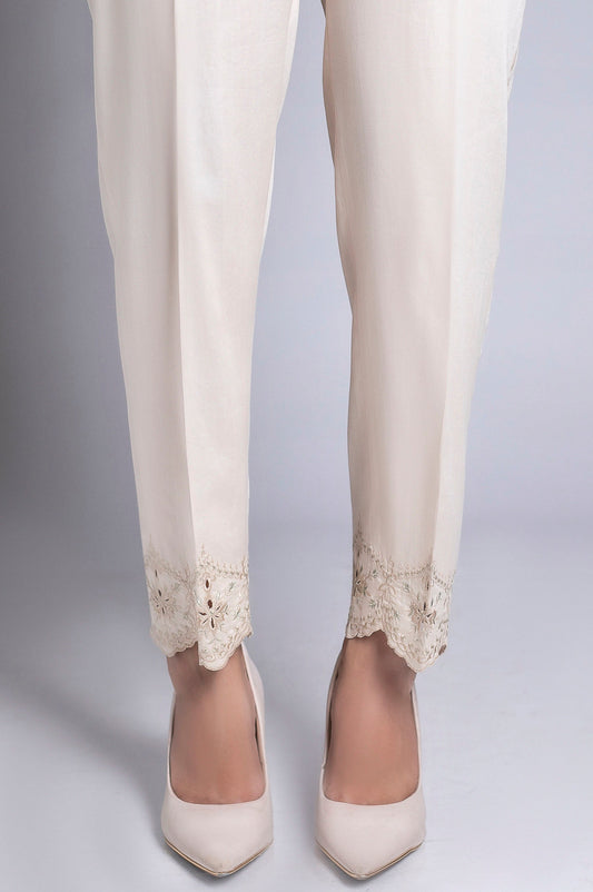 Embroidered Cigarette Pants - Off White
