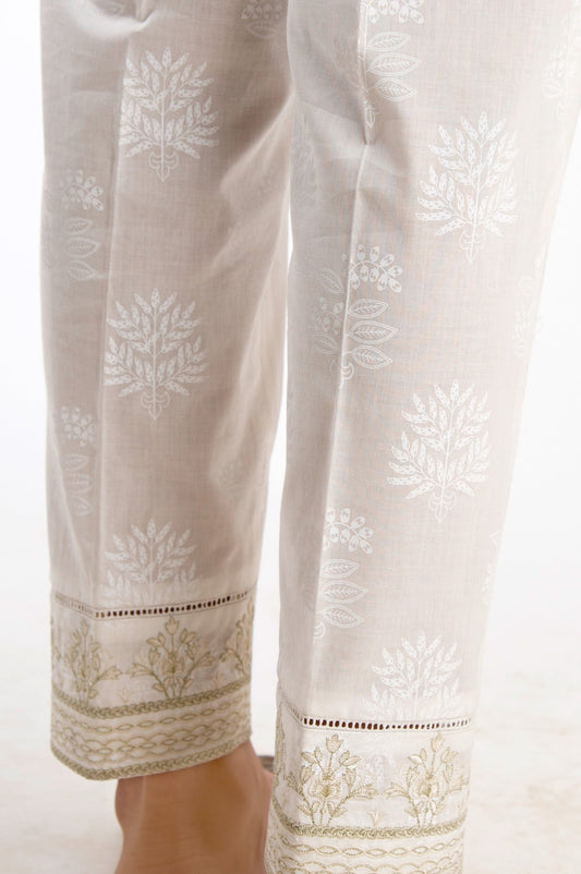 Embroidered Cigarette Pants - White Paste/White