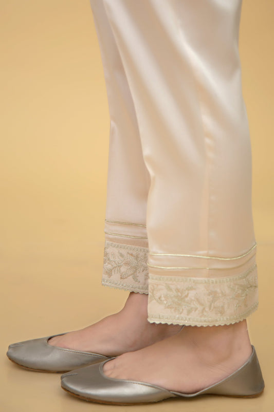 Embroidered Cotton Satin Ciggerate Pants - Beige
