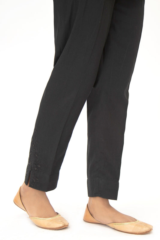 Embroidered Cotton Satin Cigarette Pant - Black