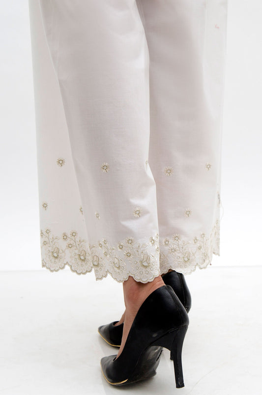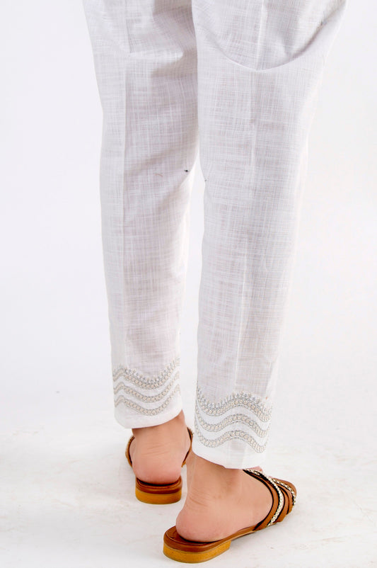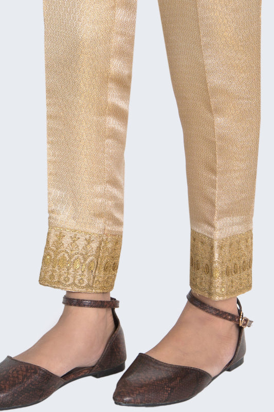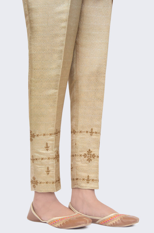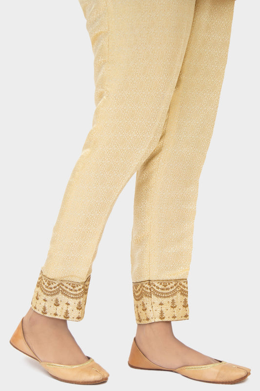Embroidered Jamawar Cigarette Pants - Light Beige