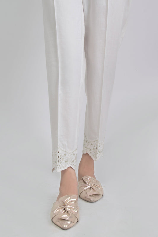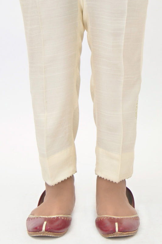 Embroidered Raw Silk Cigarette Pants - Pearl white