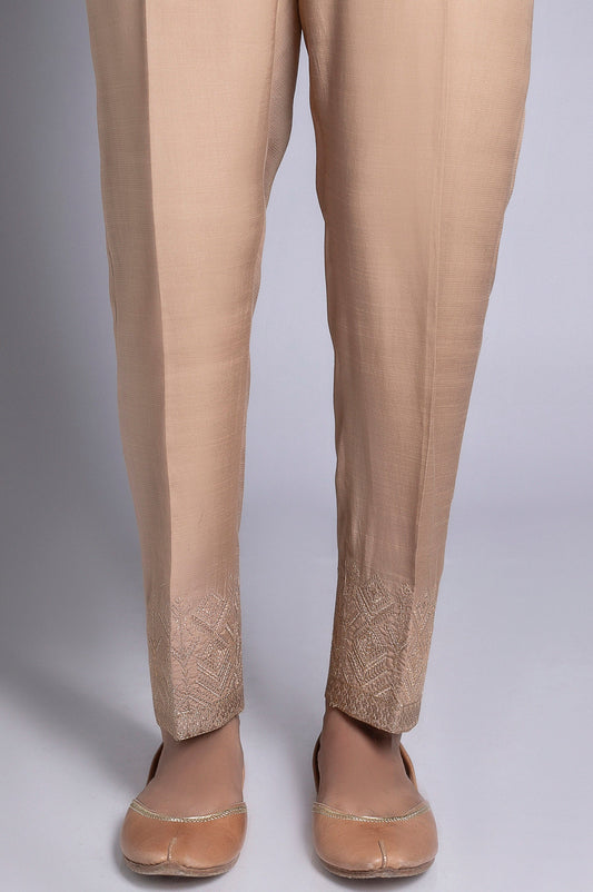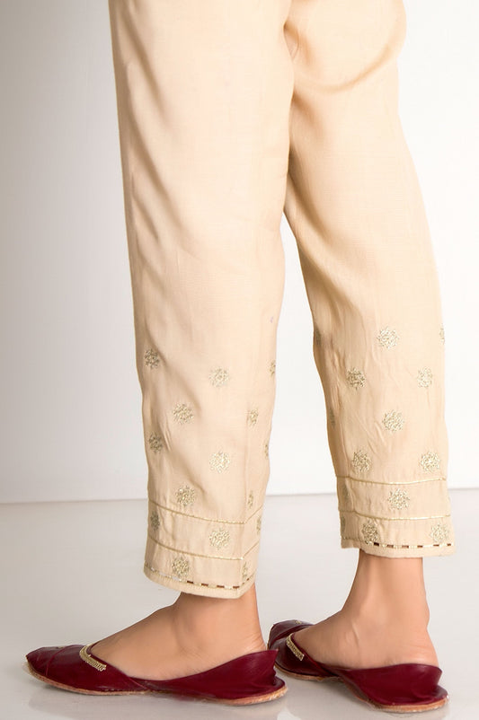Embroidered Raw Silk Cigarette Pants - Parmezan Gold