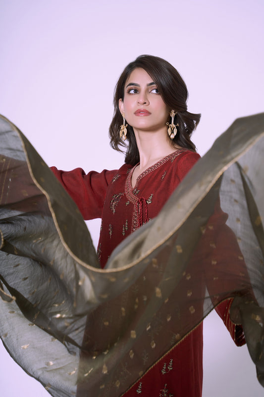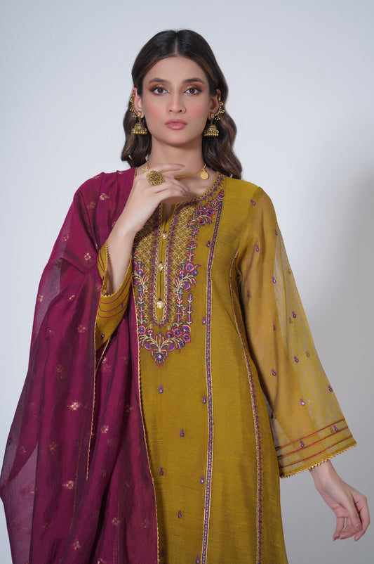3 Piece Unstitched Embroidered Khaddi Net Suit