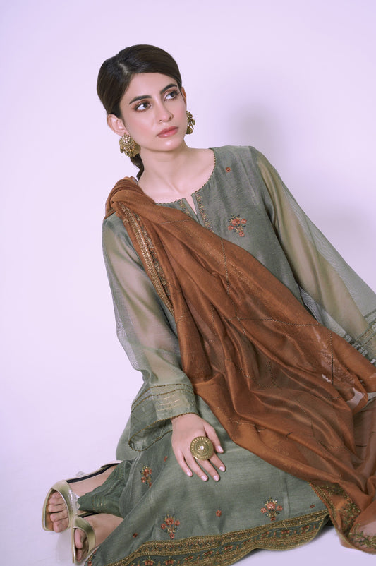 3 Piece Unstitched Embroidered Khadi Net Suit