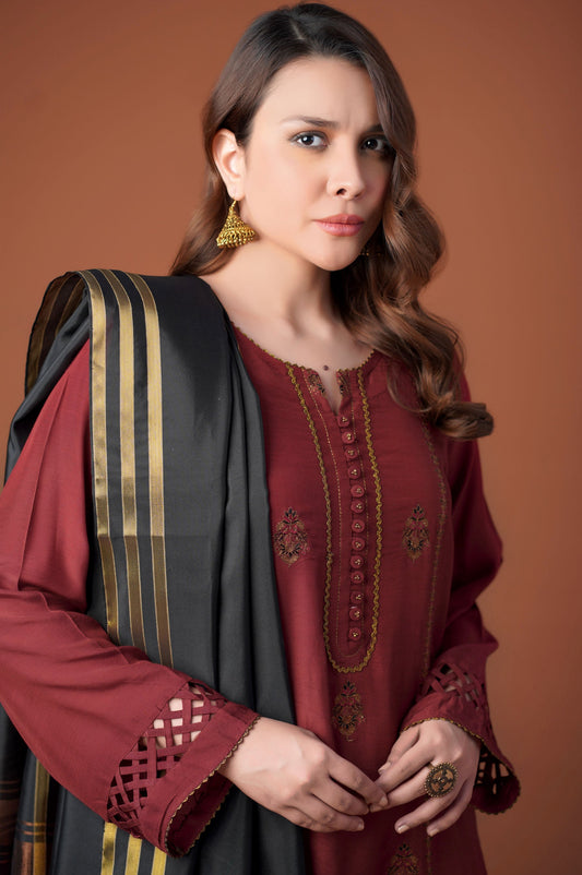 3 Piece Unstitched Embroidered Oak Silk Suit