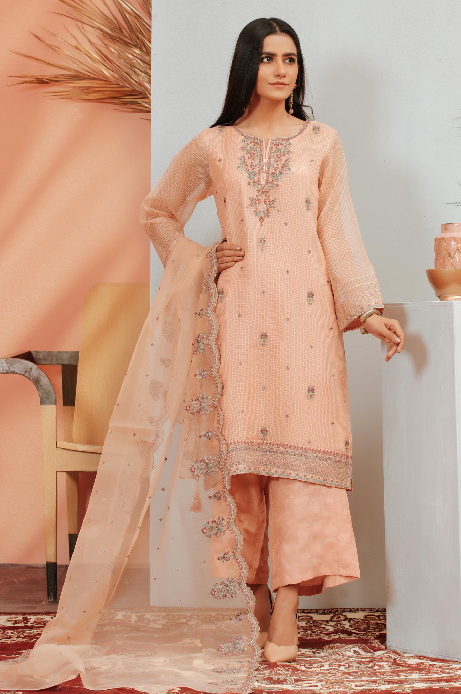3 PC Unstitched Suit-Fabric: Checkered Organza